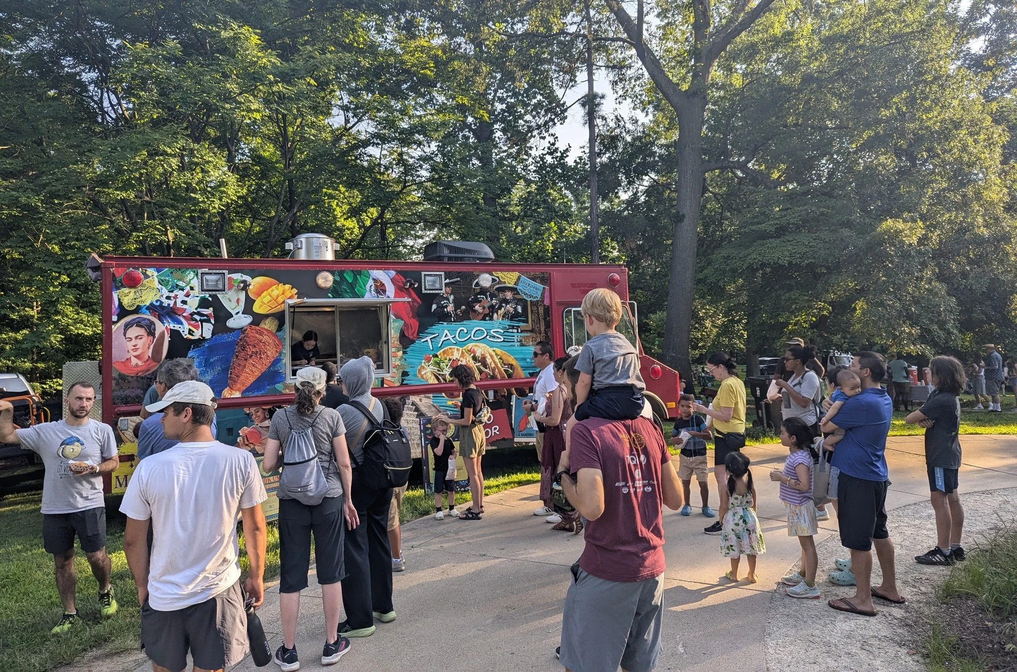 Our events are high energy! We have live music paired with some art making for the kids! There is some type of snack provided each evening along with various activities as well- but the main thing is for people to have fun in the park!
